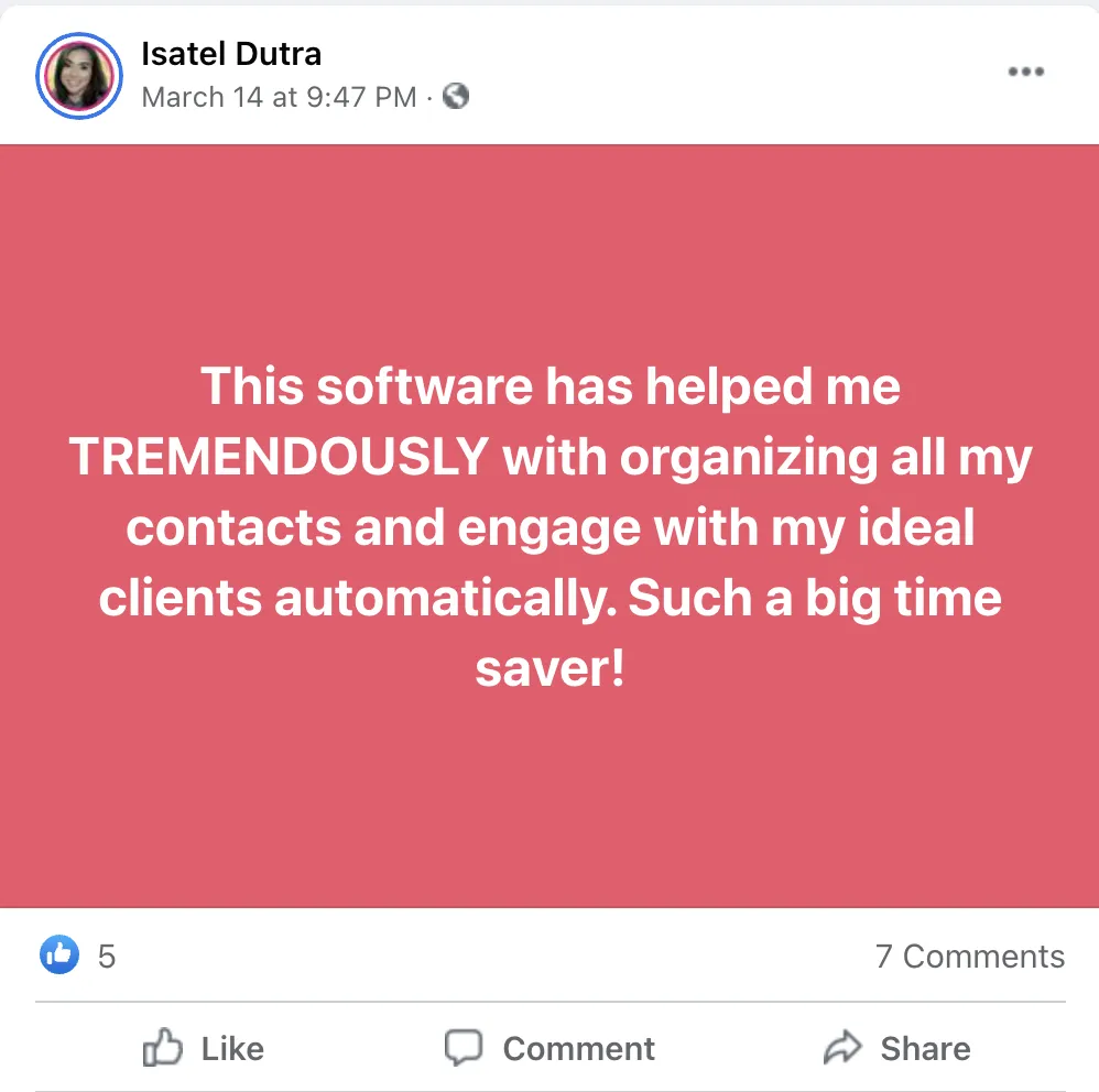 Send automated friend requests to targeted people in your niche, with a personalized welcome message with their first name, so you can focus your time on just the people that get back to you.